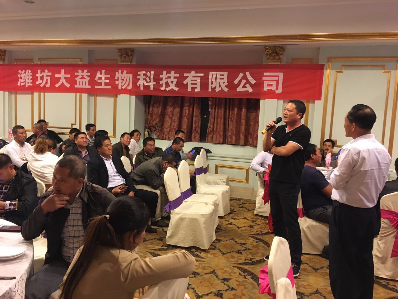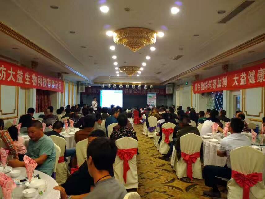 潍坊大益生物科技有限公司在江苏盐城的微生态添加剂展销会,在5月14日正式开始。此次会议邀请了盐城地区一百二十多家平均养殖规模万头以上的养殖场参会。 本次展销会结合当前国家对养殖及在环保方面的各种政策,对改善养殖环境提出了有效的改良措施。包括微生态饲料添加剂在养猪上如何应用及其所产生的各种作用功效,微生态饲料添加剂对环保方面又能起到什么样的作用,等等。 话不多说,直接上图。